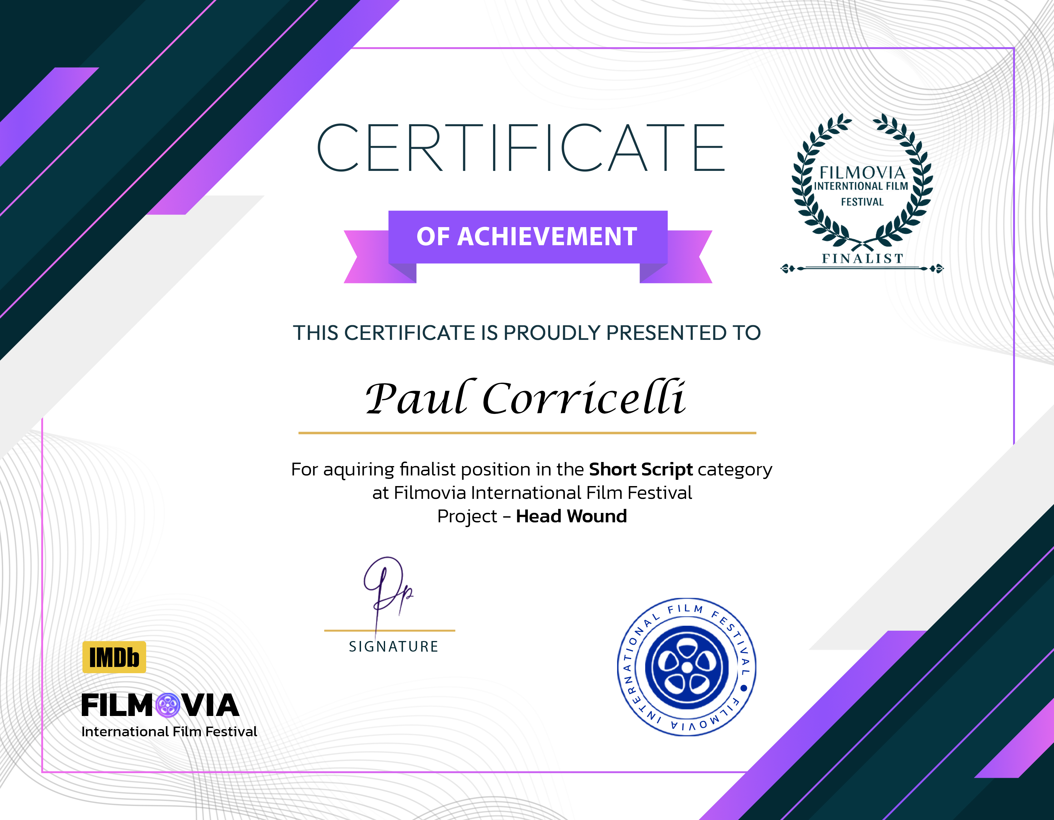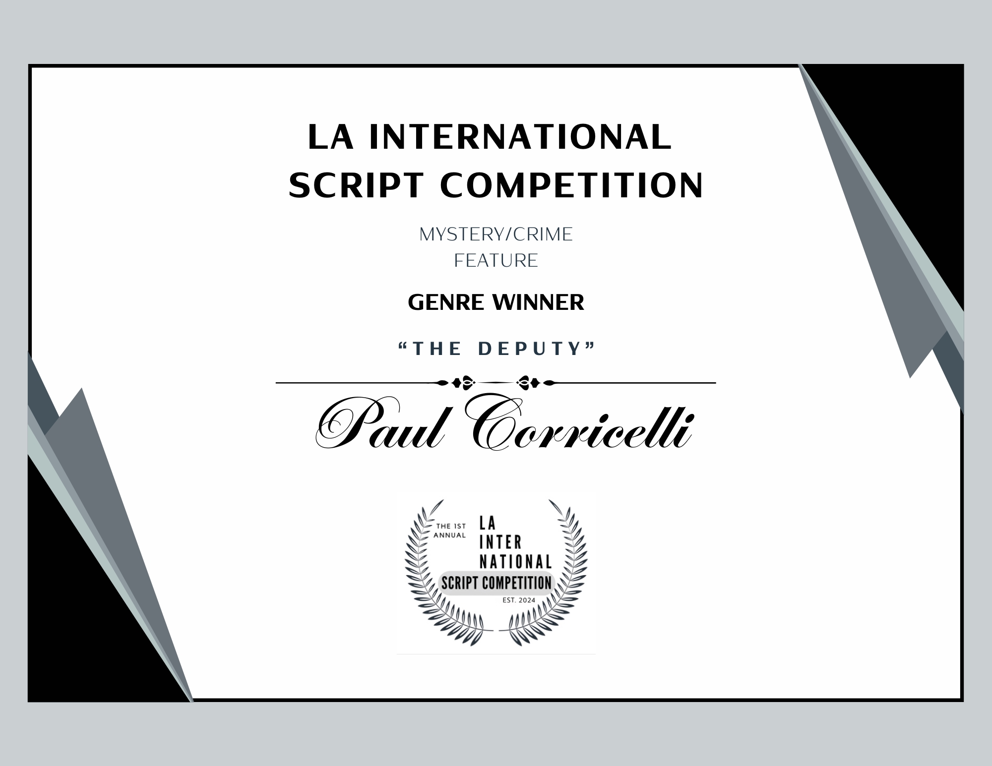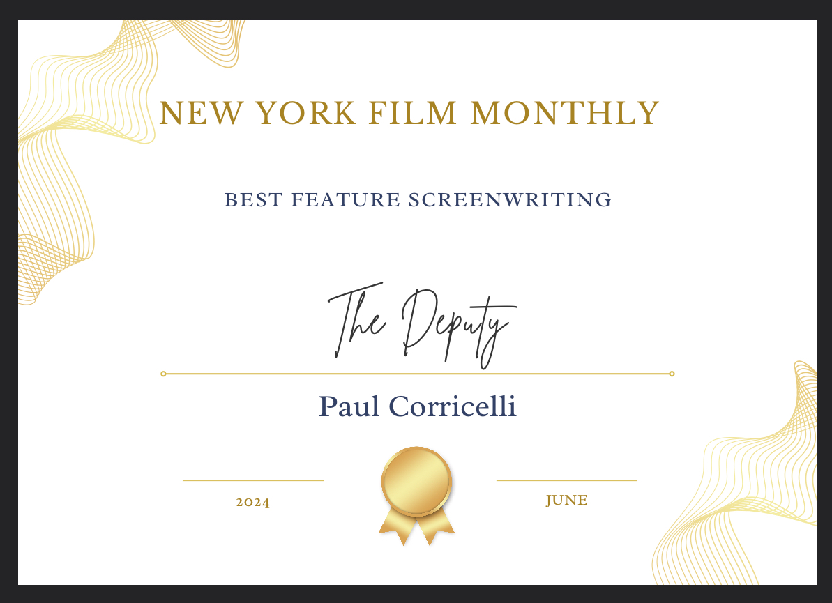but I’m finaly getting back to it. I’ll just leave a bunch of wins for my screenplays THE DEPUTY, INKED IN BLOOD and A LIFE UNRAVELLED here instead of listing them all. There are more, but It’s going to take me too ling to go back and upload them all. You can always go to http://www.instagram.com/camcorri to see all my wins… and pictures of my dogs.