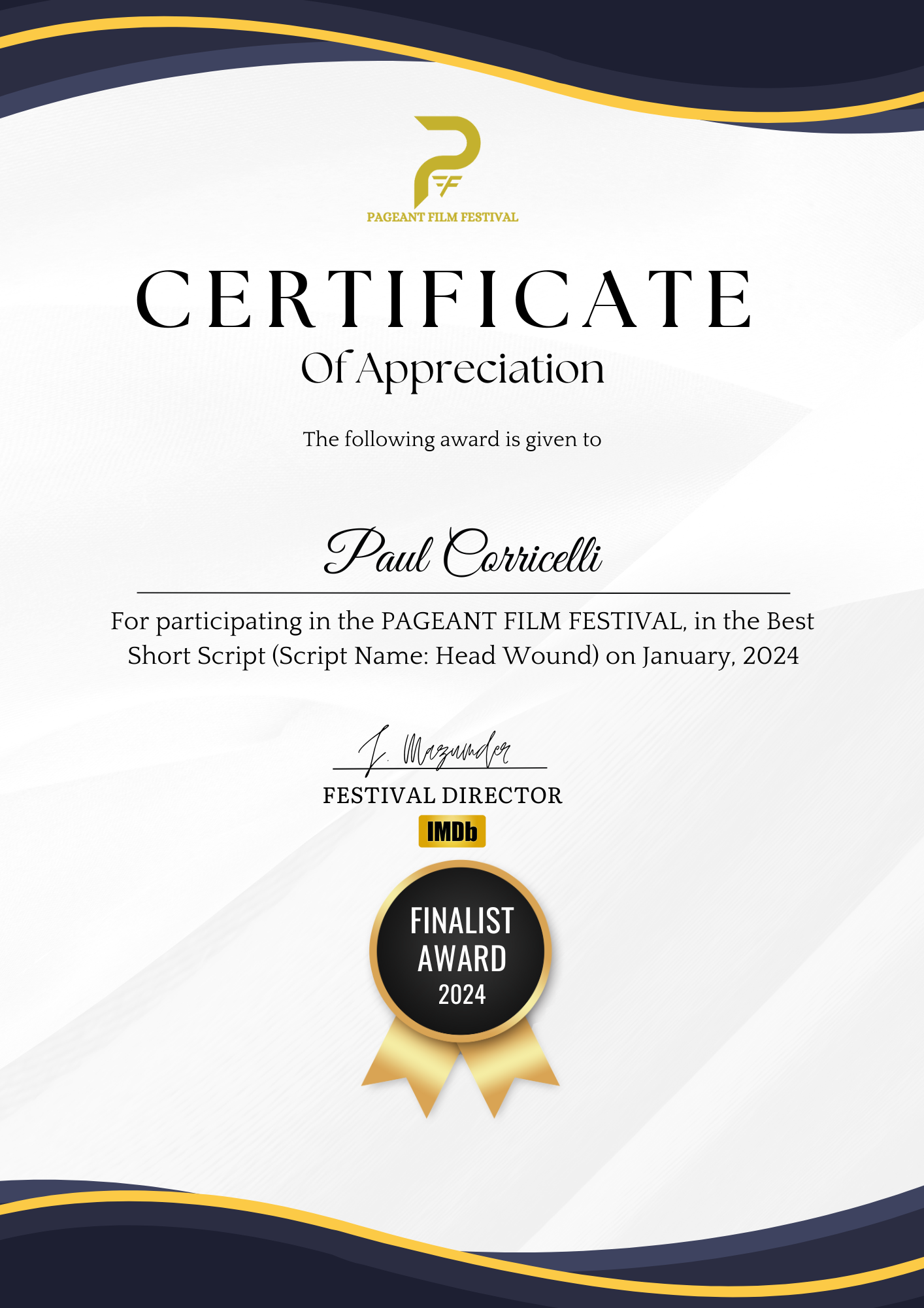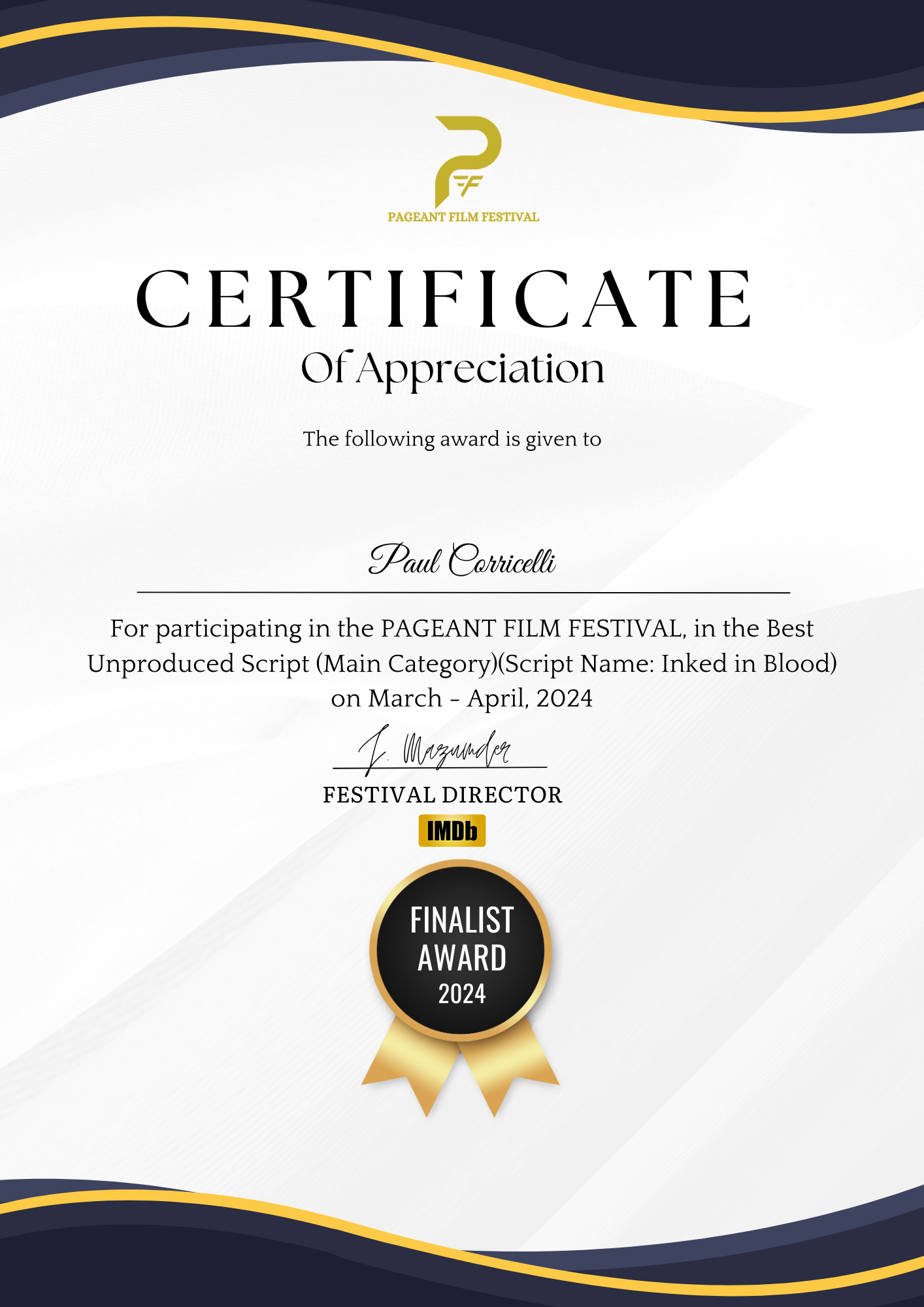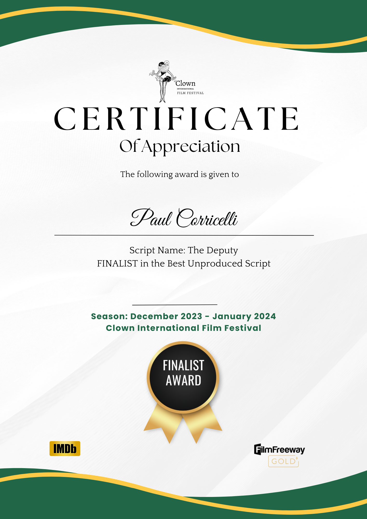but I’m finaly getting back to it. I’ll just leave a bunch of wins for my screenplays THE DEPUTY, INKED IN BLOOD and A LIFE UNRAVELLED here instead of listing them all. There are more, but It’s going to take me too ling to go back and upload them all. You can always go to http://www.instagram.com/camcorri to see all my wins… and pictures of my dogs.