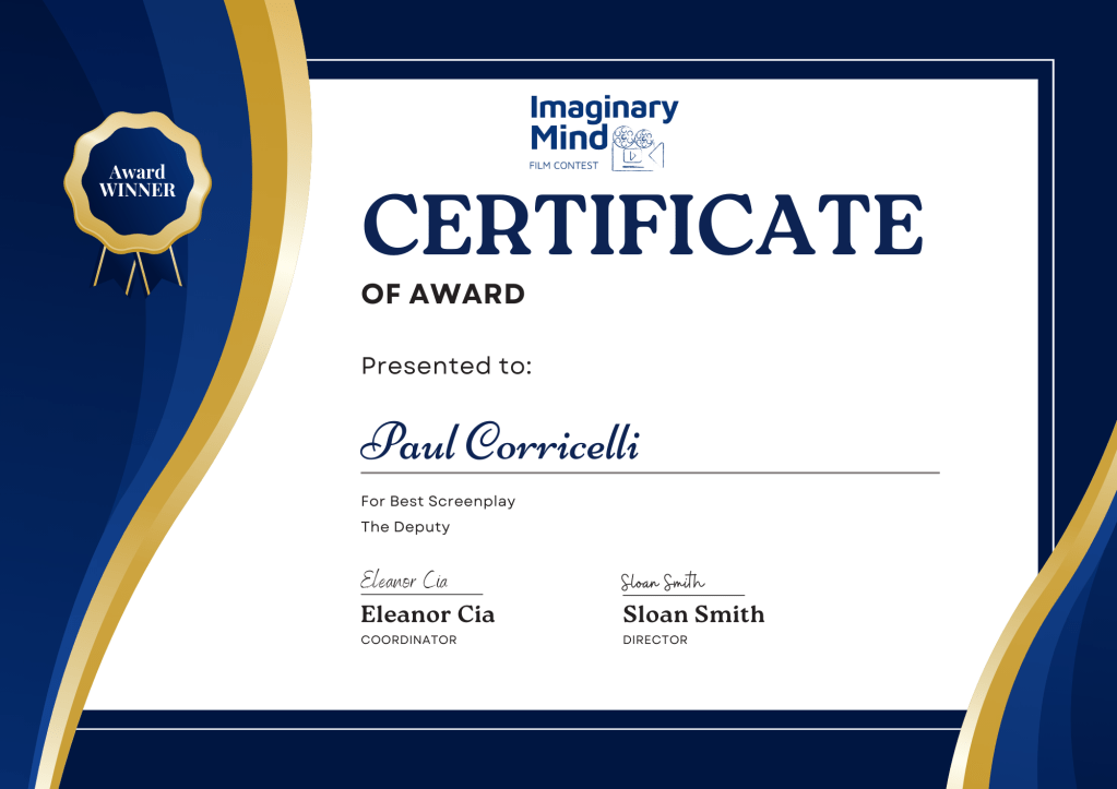 but I’m finaly getting back to it. I’ll just leave a bunch of wins for my screenplays THE DEPUTY, INKED IN BLOOD and A LIFE UNRAVELLED here instead of listing them all. There are more, but It’s going to take me too ling to go back and upload them all. You can always go to http://www.instagram.com/camcorri to see all my wins… and pictures of my dogs.